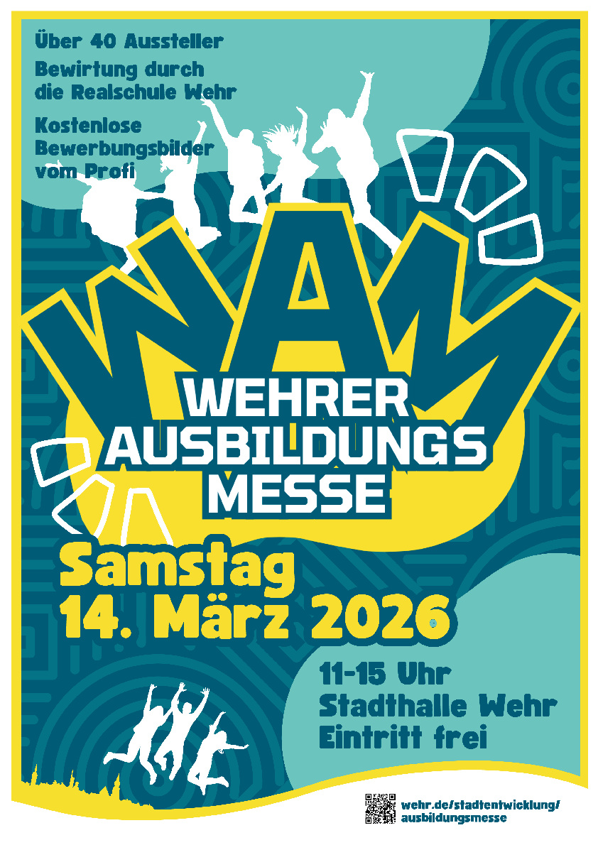 Nachdem die letztjährige Ausbildungsmesse in Wehr ein voller Erfolg war, schaffen die Stadt Wehr und die Service-Gemeinschaft Wehr erneut diese Plattform zur Berufsorientierung und damit zur Gewinnung von Nachwuchskräften - am