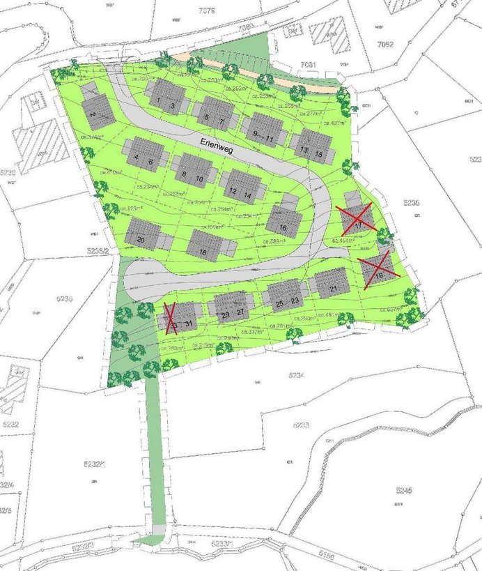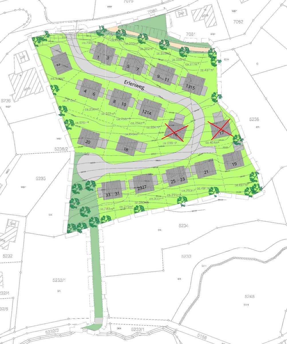 Sie wollen den Traum vom Eigenheim wahr werden lassen? Wir bieten in unserem Neubaugebiet „Hölzle-Hungerrain“ die Bauplätze Erlenweg 1 - 16 sowie 18 – 33 zur Realisierung Ihres Bauvorhabens an. Dies sind 5 Einzelhaus-Bauplätze sowie 20 Bauplätze für Doppelhaushälften. Die Grundstücksgrößen der Einzelhäuser betragen zwischen 623 m² und 674 m². Die Grundstücke der Doppelhaushälften haben eine Größe zwischen 227 m² und 433 m². Der Kaufpreis beträgt 370 €/m².